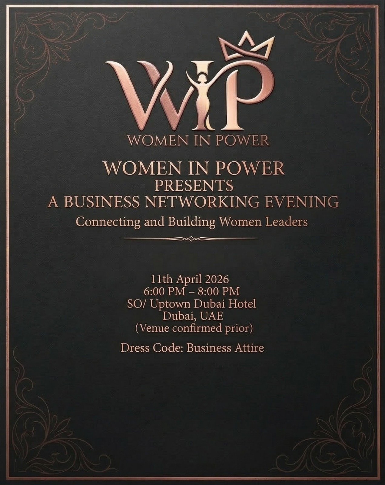 Join us for an inspiring evening dedicated to connection, collaboration, and the empowerment of women in leadership. Set against the sophisticated backdrop of the SO/ Uptown Dubai Hotel, this event is designed to foster meaningful professional relationships and celebrate the impact of female leaders in our community.
